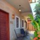 Na varanda superior temos a nossa área de convívio, com churrasqueira, mesa, geladeira, cadeiras de balanço e redes para deitar